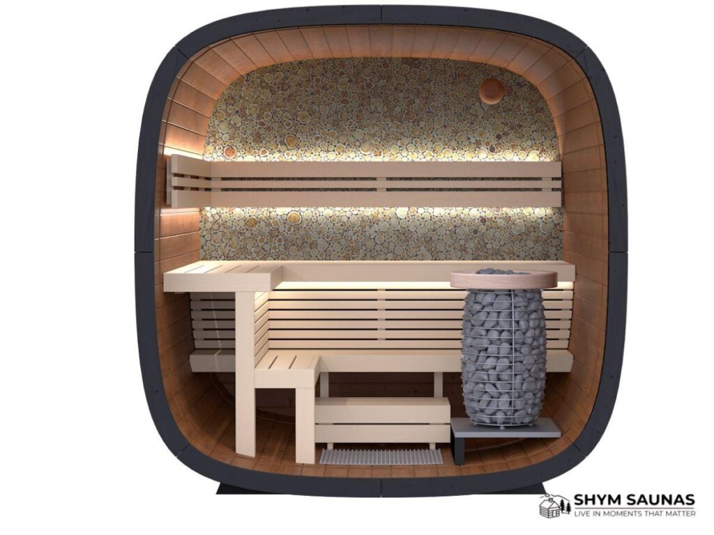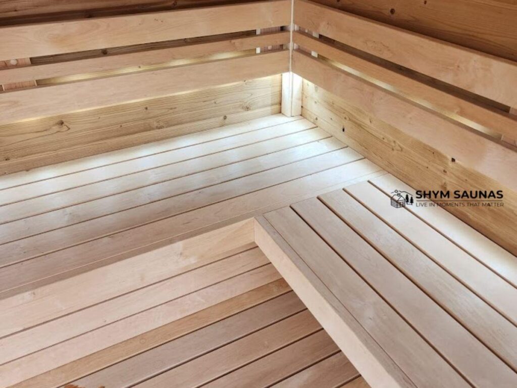 On the inside, benches are finished in premium knotless aspen or alder, both chosen for their low thermal conductivity and smooth, skin-friendly surfaces. Knotless means no random hot spots or sharp edges – just clean, comfortable seating you can actually lie down on without adjusting every few seconds.